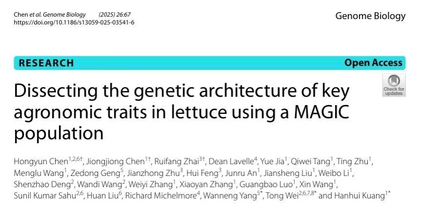 英文題目:Dissecting the genetic architecture of key agronomic traits in lettuce using a MAGIC population