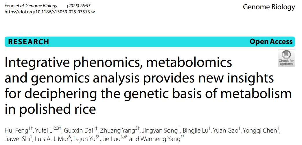 英文題目:Integrative phenomics, metabolomics and genomics analysis provides new insights for deciphering the genetic basis of metabolism in polished rice