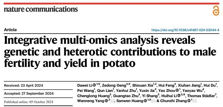 英文題目:Integrative multi-omics analysis reveals genetic and heterotic contributions to male fertility and yield in potato