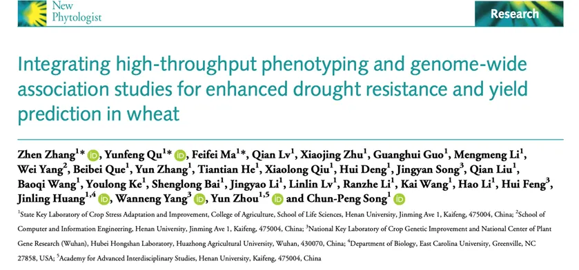 英文題目:Integrating high-throughput phenotyping and genome-wide association studies for enhanced drought resistance and yield prediction in wheat
