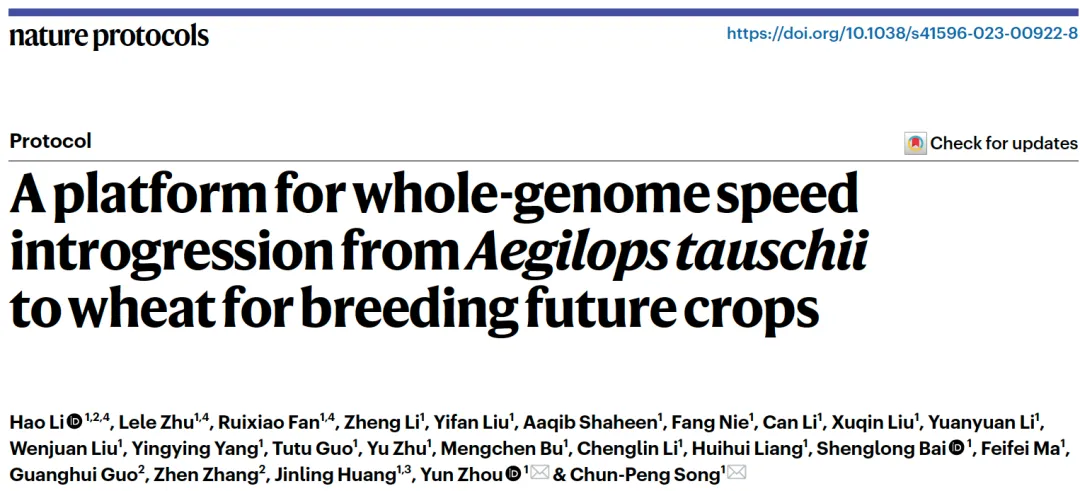 英文題目:A platform for whole-genome speed introgression fromAegilops tauschiito wheat for breeding future crops