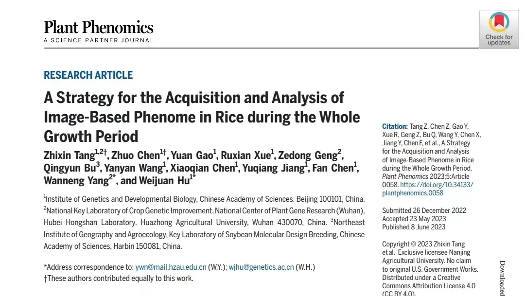 英文題目:Integrating Dynamic High-Throughput Phenotyping and Genetic Analysis to Monitor Growth Variation in Foxtail Millet