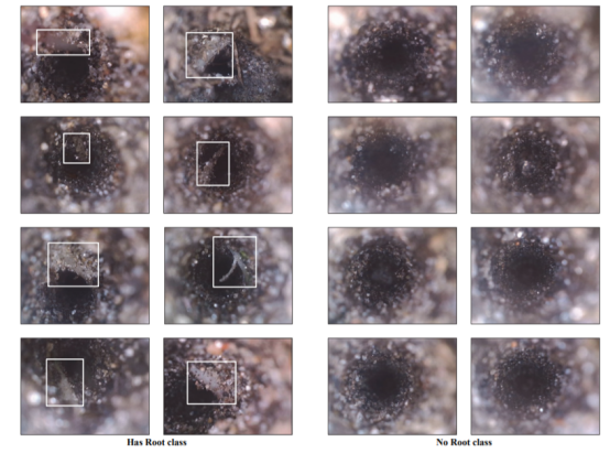 用 MISIRoot 測量的植物和未測量的植物(對照)與來自高光譜成像設(shè)備的結(jié)果(參考)仔細(xì)比較。兩組植物在不同的生長階段沒有發(fā)現(xiàn)顯著差異。MISIRoot 可以在對根部干擾最小的情況下獲取土壤中根部的高分辨率彩色圖像,并以 0.1 毫米的精度測量根部的三維 (3D) 結(jié)構(gòu)。在測試中,用 MISIRoot 在 V3、V4 和 V5 生長階段測量了水分充足和干旱脅迫組的玉米植物。系統(tǒng)成功獲取了根的 RGB 彩色圖像和包含檢測到的根位置的 3D 點(diǎn)云數(shù)據(jù)。用 MISIRoot 測量的植物和未測量的植物(對照)與來自高光譜成像設(shè)備的結(jié)果(參考)仔細(xì)比較。兩組植物在不同的生長階段沒有發(fā)現(xiàn)顯著差異。MISIRoot 可以在對根部干擾最小的情況下獲取土壤中根部的高分辨率彩色圖像,并以 0.1 毫米的精度測量根部的三維 (3D) 結(jié)構(gòu)。