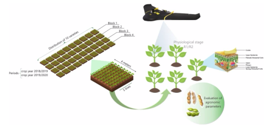 精準(zhǔn)農(nóng)業(yè)技術(shù)被廣泛用于優(yōu)化土肥的施用。此外,這些技術(shù)還可以與新的統(tǒng)計(jì)工具相結(jié)合,以協(xié)助在育種計(jì)劃中進(jìn)行表型分析。在這項(xiàng)研究中,研究假設(shè)是不同大豆品種在波長(zhǎng)和植被指數(shù)測(cè)量方面表現(xiàn)出表型差異。
