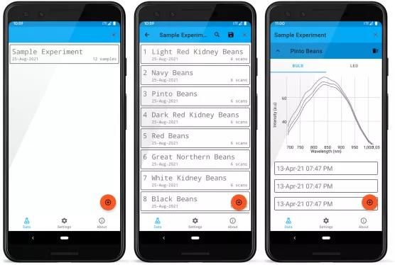 不幸的是,這些光譜儀的移動(dòng)應(yīng)用程序并非旨在以育種計(jì)劃所需的規(guī)??焖偈占M織樣本。為此,我們開發(fā)了 Prospector,這是一款移動(dòng)應(yīng)用程序,可與 LinkSquare 便攜式近紅外 (NIR) 光譜儀連接,并允許育種者有效地捕獲 NIR 數(shù)據(jù)。