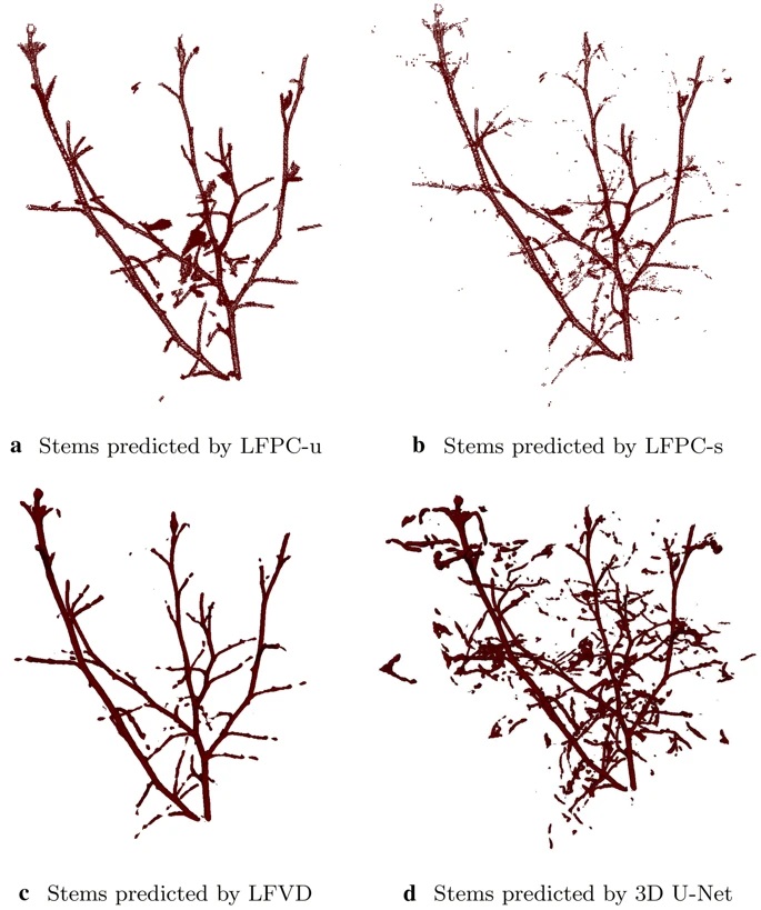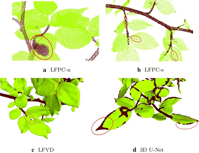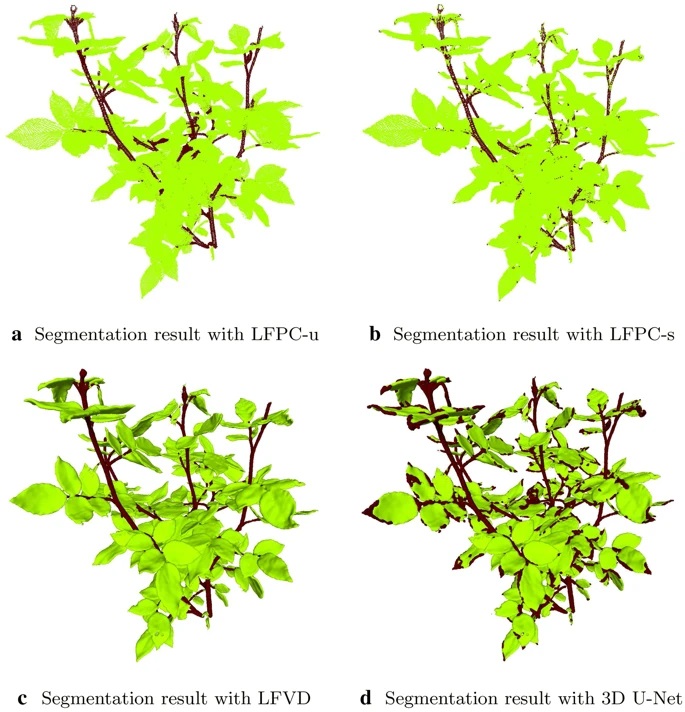 作者提供了11種薔薇屬植物的帶注釋3D數(shù)據(jù)集,用于器官分割方法的訓練和評估。還報告了基線方法的葉/莖分割結(jié)果,這些結(jié)果有待改進。該數(shù)據(jù)集與基線結(jié)果一起,有可能成為未來植物自動表型研究的重要資源。