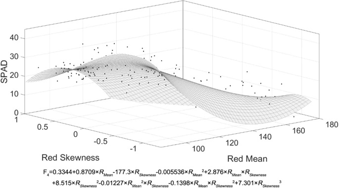 SPAD多項式擬合曲面。利用MATLAB曲線擬合工具箱得到擬合曲線(F4)。