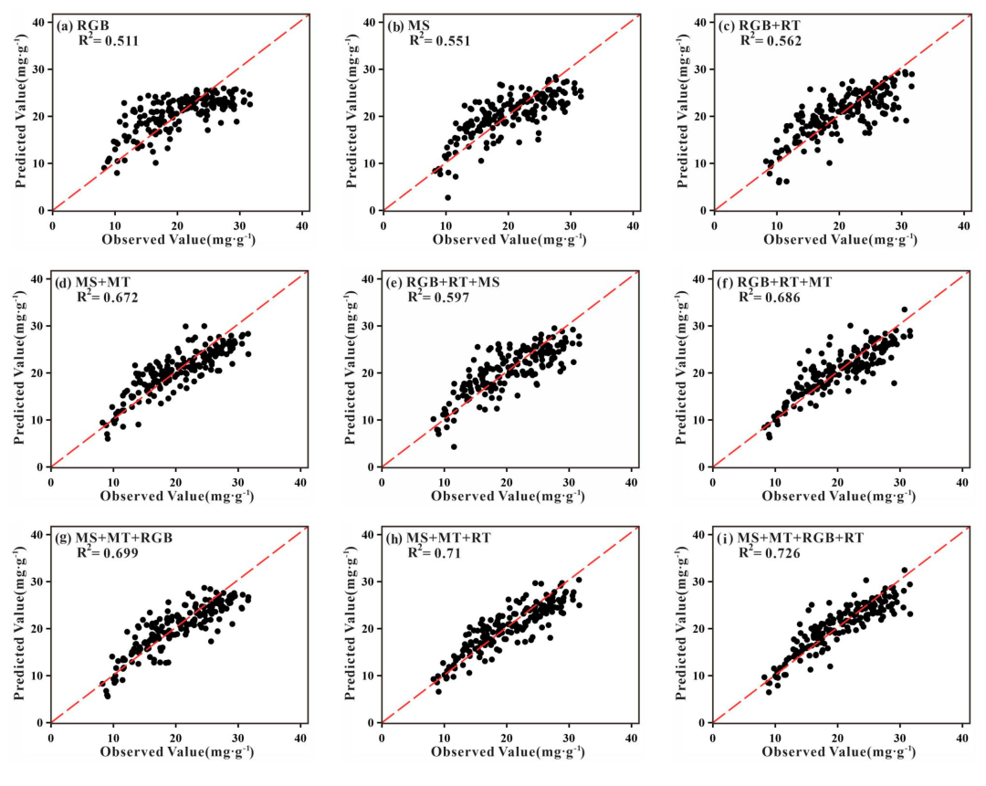 文獻(xiàn)來源:Li, Z.; Zhou, X.; Cheng, Q.; Fei, S.; Chen, Z. A Machine-Learning Model Based on the Fusion of Spectral and Textural Features from UAV Multi-Sensors to Analyse the Total Nitrogen Content in Winter Wheat. Remote Sens. 2023, 15, 2152. https://doi.org/10.3390/rs15082152