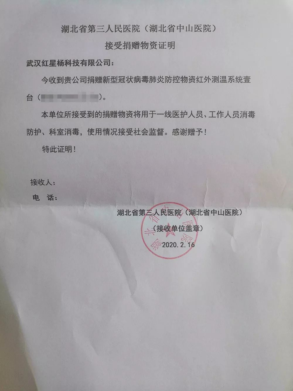 2月16日-17日,武漢谷豐光電科技有限公司攜手武漢紅星楊科技有限公司向湖北省第三人民醫(yī)院(湖北省中山醫(yī)院),武漢大學(xué)分別捐贈(zèng)一套紅外線測(cè)溫系統(tǒng),用于新型冠狀病毒肺炎防控。