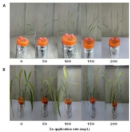 結(jié)果表明,低劑量的ZnO NPs(100mg/L)供應(yīng)可以促進(jìn)植物的生長,可以作為作物生產(chǎn)的鋅肥來源。